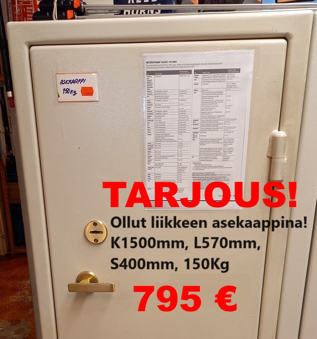 NYT EDULLISESTI! ![]() AMMUSKAAPPI, koko L 106,5cm X K 111cm X S 57cm ![]() ![]() ![]() LAMU elintarvikemuovipussit: 22x34cm / 200kpl 30x47cm / 100kpl 35x55cm / 100kpl Pussien hinnat on 22x34cm 14,00 euroa 30x47cm 14,00 euroa 35x55cm 18,00 euroa ![]() ![]() ![]() |